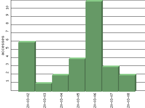 | Date | Accesses | % | Bytes | % | Visits | % | Bits per Sec | Bytes per Sec |
