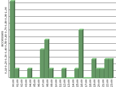 | Hour | Accesses | % | Bytes | % | Visits | % | Bits per Sec | Bytes per Sec |